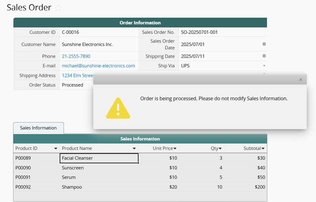 For example: Apply Conditional Formatting to make the "Total Amount" field Read Only when the "Status" field of a quotation sheet is marked as "Completed". Even if you set the "Total Amount" field as Read Only, it can still be modified when the "Status" field is not "Completed". The Read Only status of the "Total Amount" field only applies when the "Status" field is marked as "Completed".
