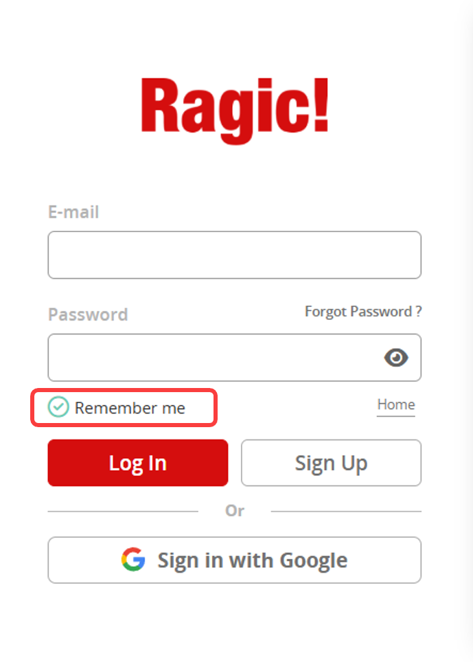 Set to No: The "Remember me" option is not displayed, and login information is not saved. Users must sign in again after closing the browser. If only the Ragic tab is closed, the session remains active, and users remain signed in.