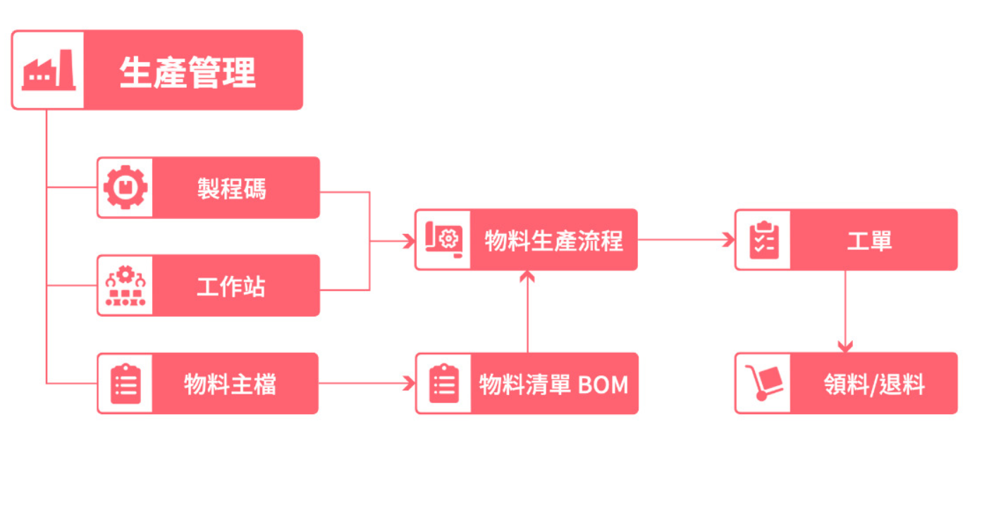 制造业的基本操作流程和 BOM (物料清单)息息相关,从定义制造一个商品的配方料表、生产流程,到生产商品的工单记录上利用炸 BOM 表(展开BOM表)的功能直接带出所有需要的生产物料及流程,以利生产商品并转成库存,而后销售给客户,都会需要完善的生产管理系统来协助。