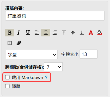 启用后,就可以在此描述字段使用 Markdown 句法来排版内容,例如粗体、清单、引用等,让字更容易阅读。详细说明请参阅 Markdown 字段说明。