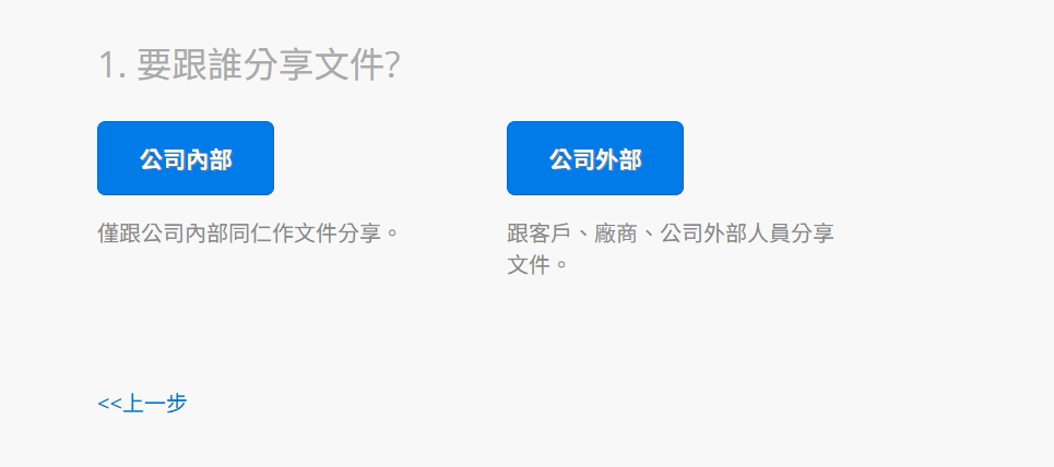 首先,選擇要分享的對象是公司內部還是外部人員。