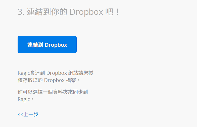 連結並同步你的 Dropbox,並設定要連結的 Dropbox 資料夾,或直接在 Dropbox 中新增一個 RagicDoc 資料夾。