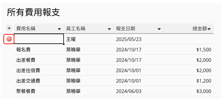 新增一列資料時,如果要刪除該列資料,可以點擊左側的紅色移除按鈕。