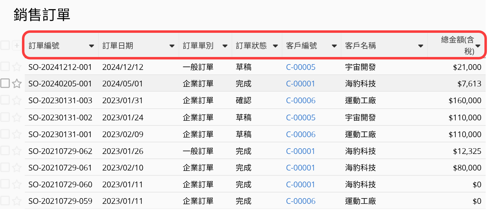 而在列表頁,欄位標頭會在上方以水平排列。